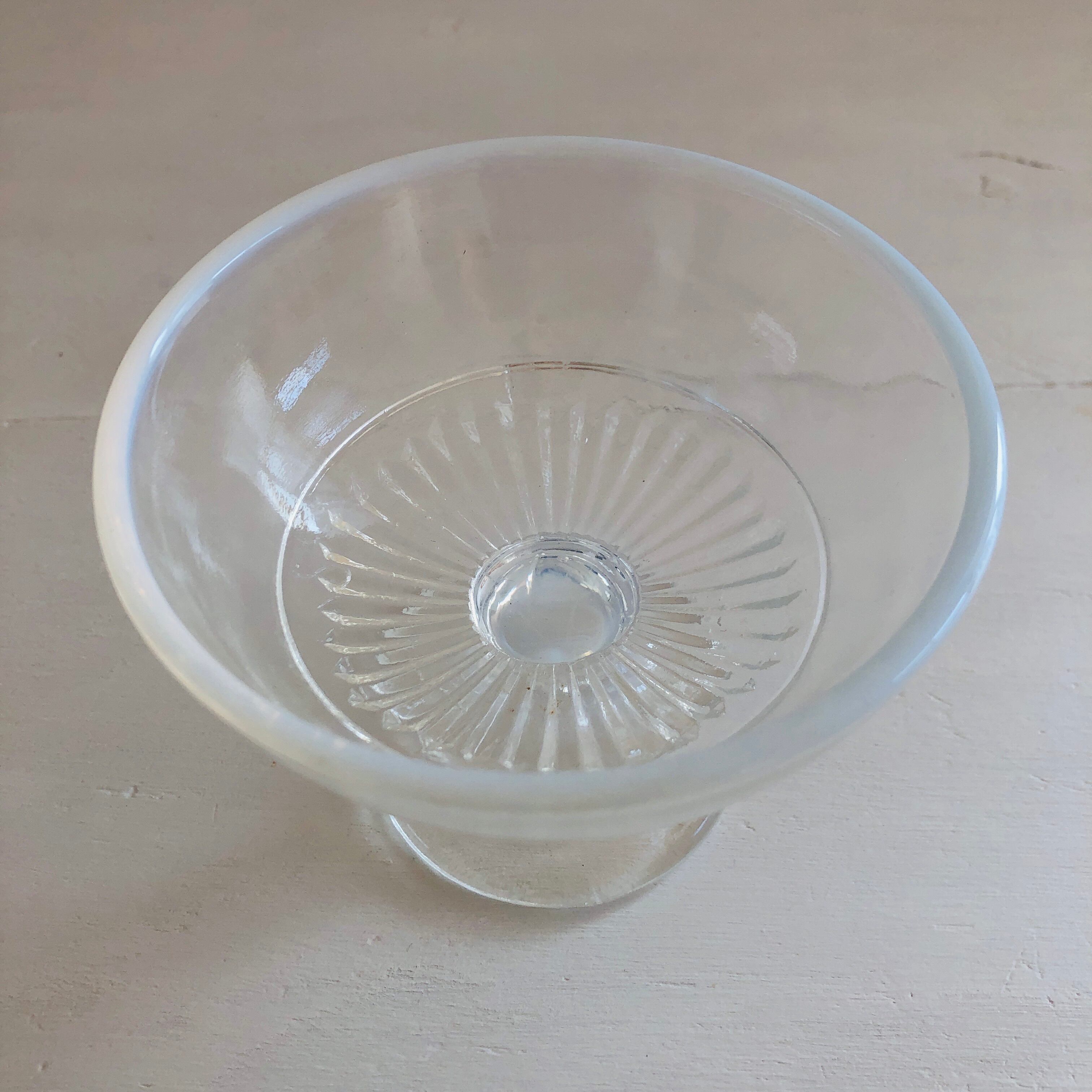 ミルク色の縁どりデザートグラス・コーヒーゼリーグラス・アイスクリームグラス・プリン器・あんみつ皿・かき氷カップ・乳白色レトロデザイン(ブロカント雑貨)
