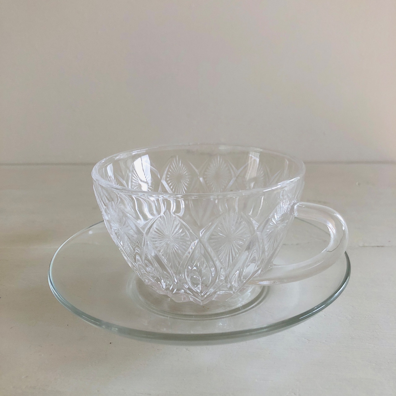 ご希望の場合はプラス500円で、このページのガラスティーカップと合わせお買い求めいただけますので、ご購入前にご相談いただければと思います。ソーサーはフランス製 ARCのヴィンテージです。