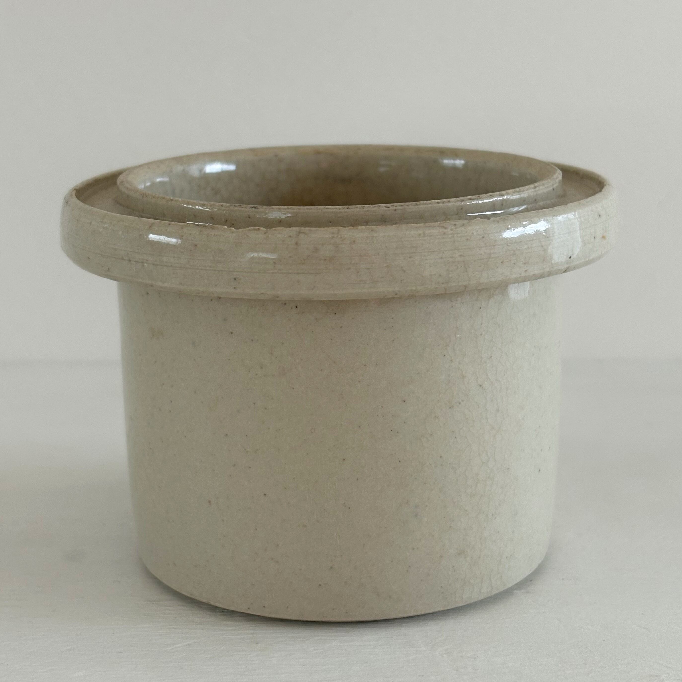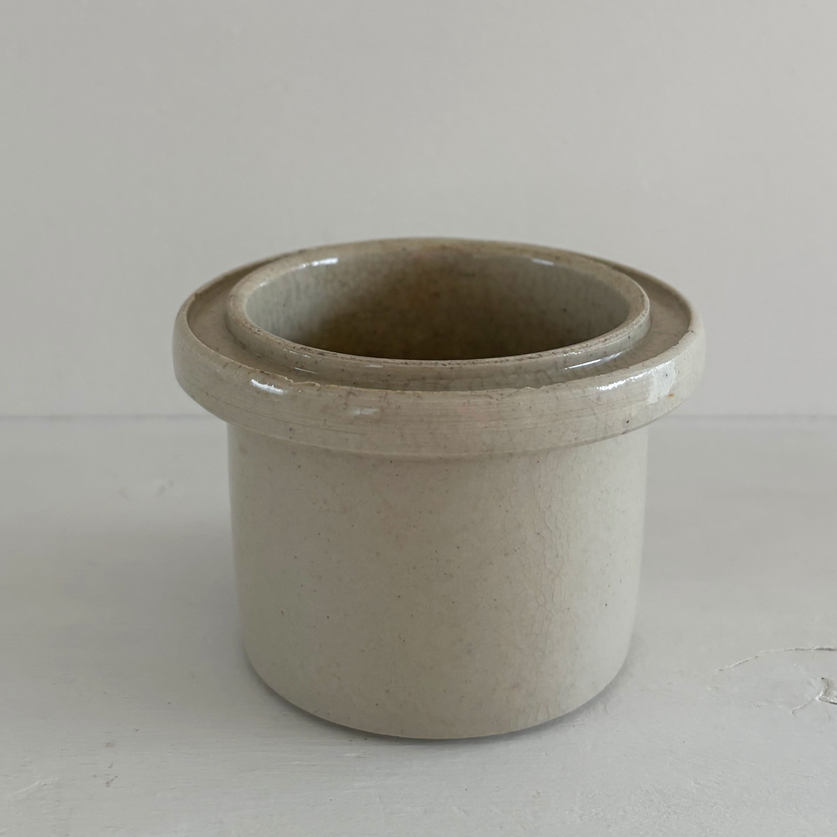 フランス製LA MÉNAGÈREジャムポット・パテポット・バター器・塩壺・グレー・グレージュ・ベージュ陶器(ヴィンテージ雑貨)