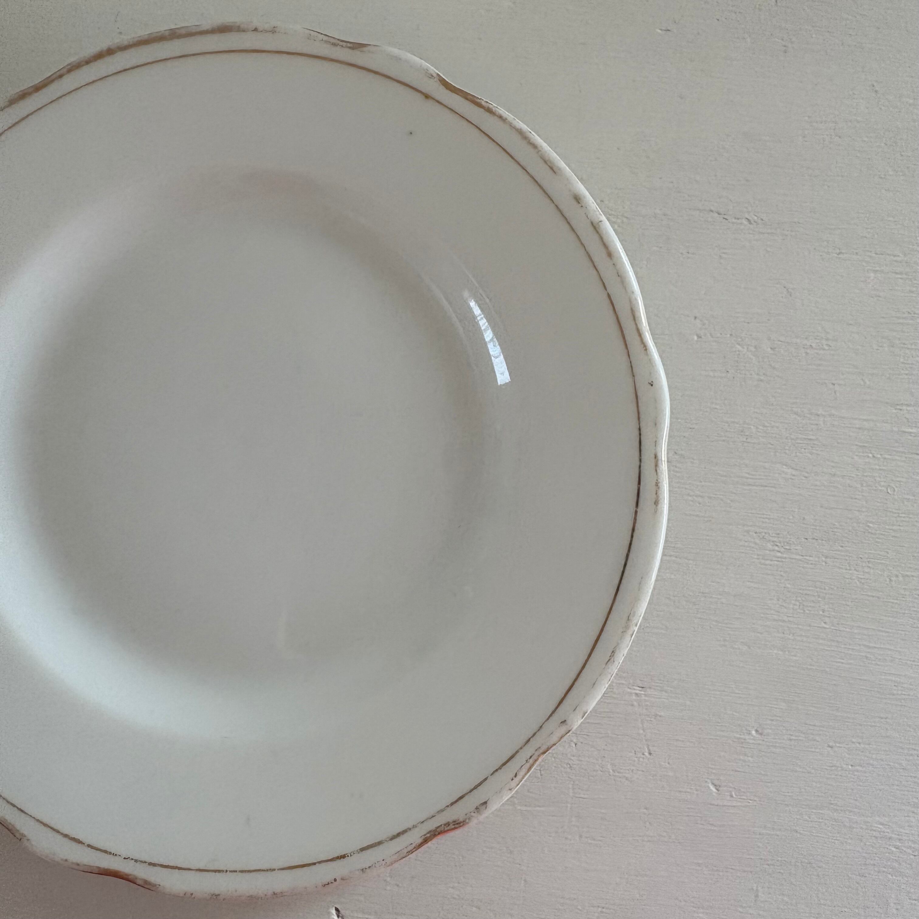 ひらひらと優雅な縁に、経年により擦れたゴールドラインが味わい深く魅力的な小皿です。
