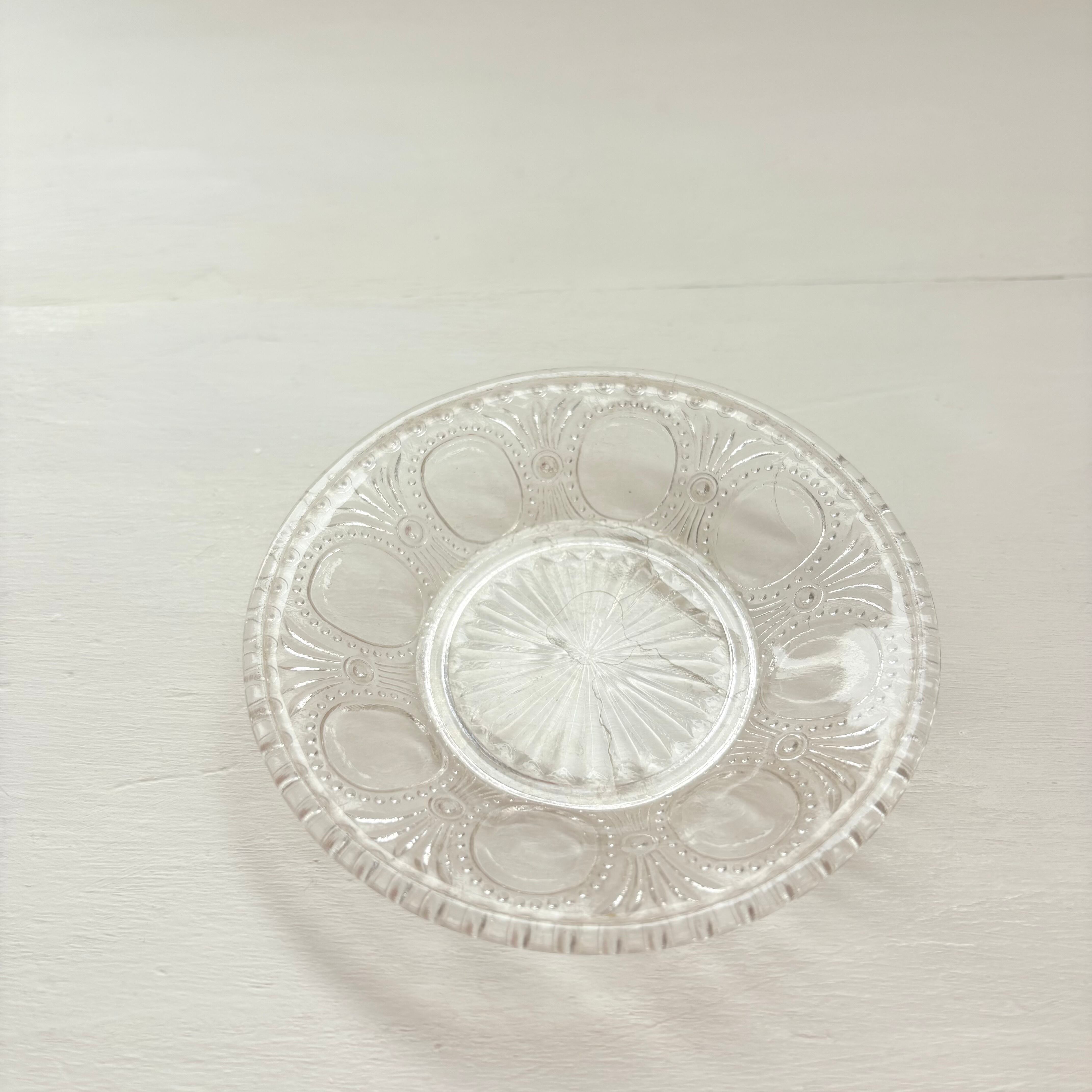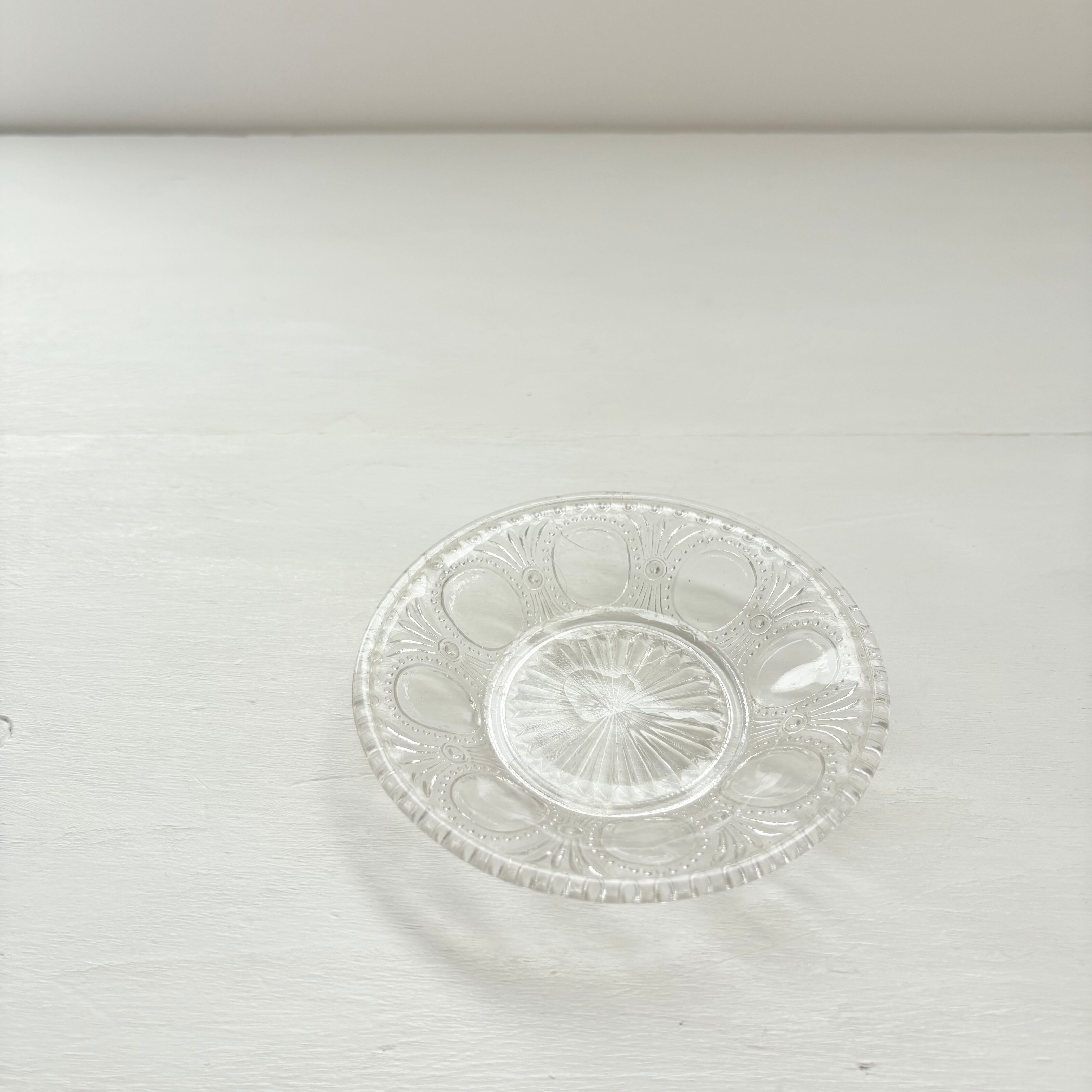異国情緒漂う模様が特徴的なプレスガラスの小皿です。