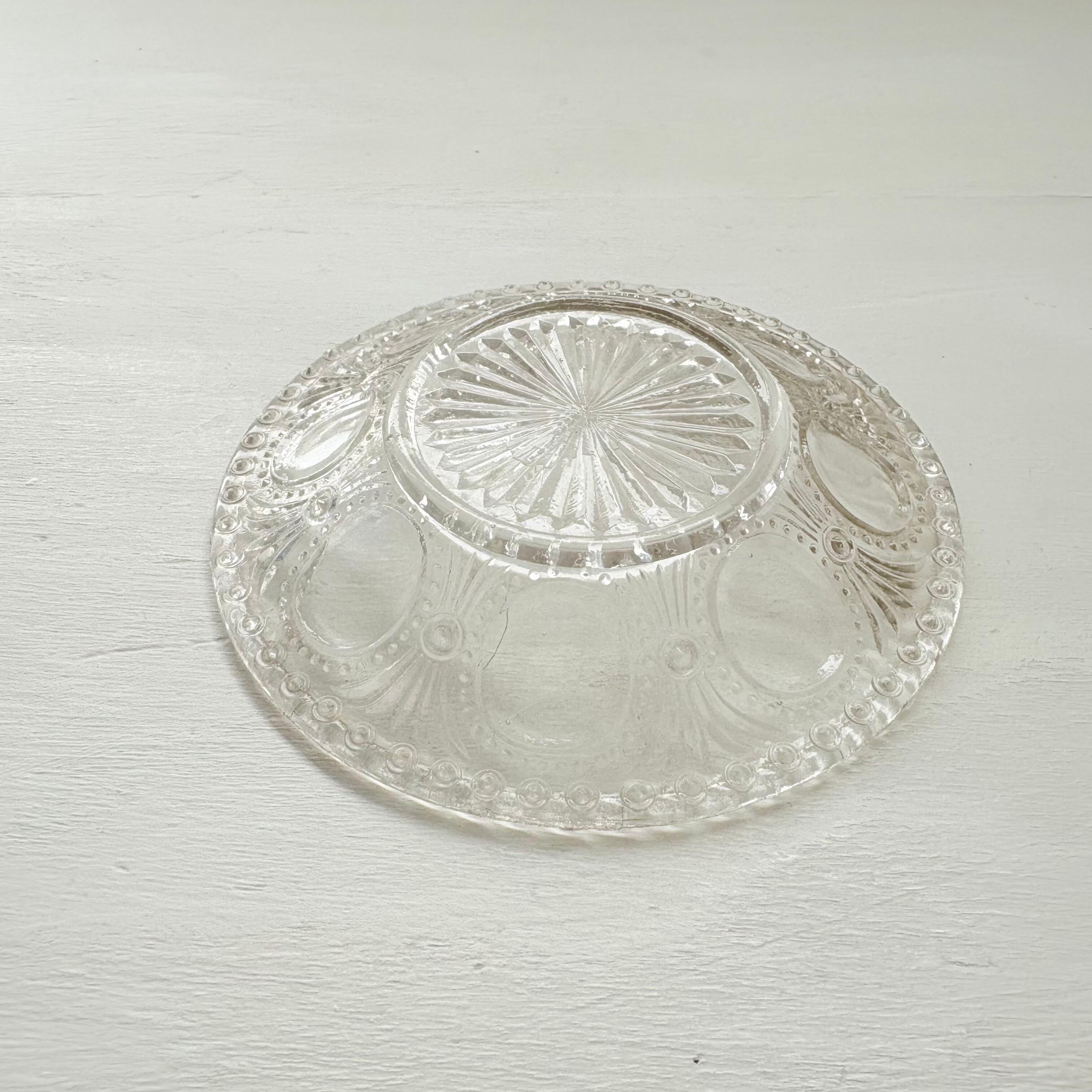 日本製ヴィンテージガラスの小皿・まめ皿・レース皿・プレスガラス・八つ割・大正-昭和初期(和ガラス・ヴィンテージ雑貨)