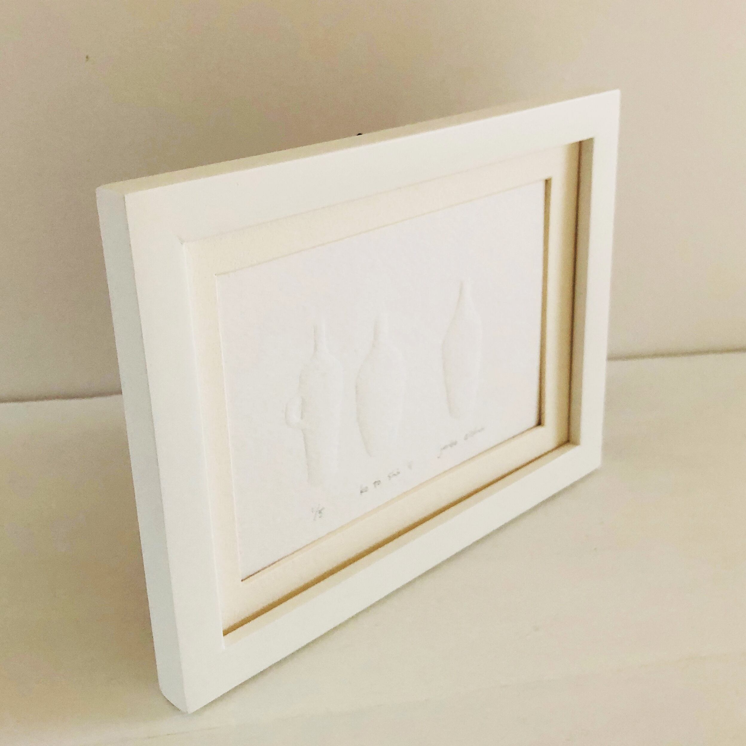 白いボトルの絵・エンボス作品「 ko to shi ⅱ 」(白い額入り)・送料無料