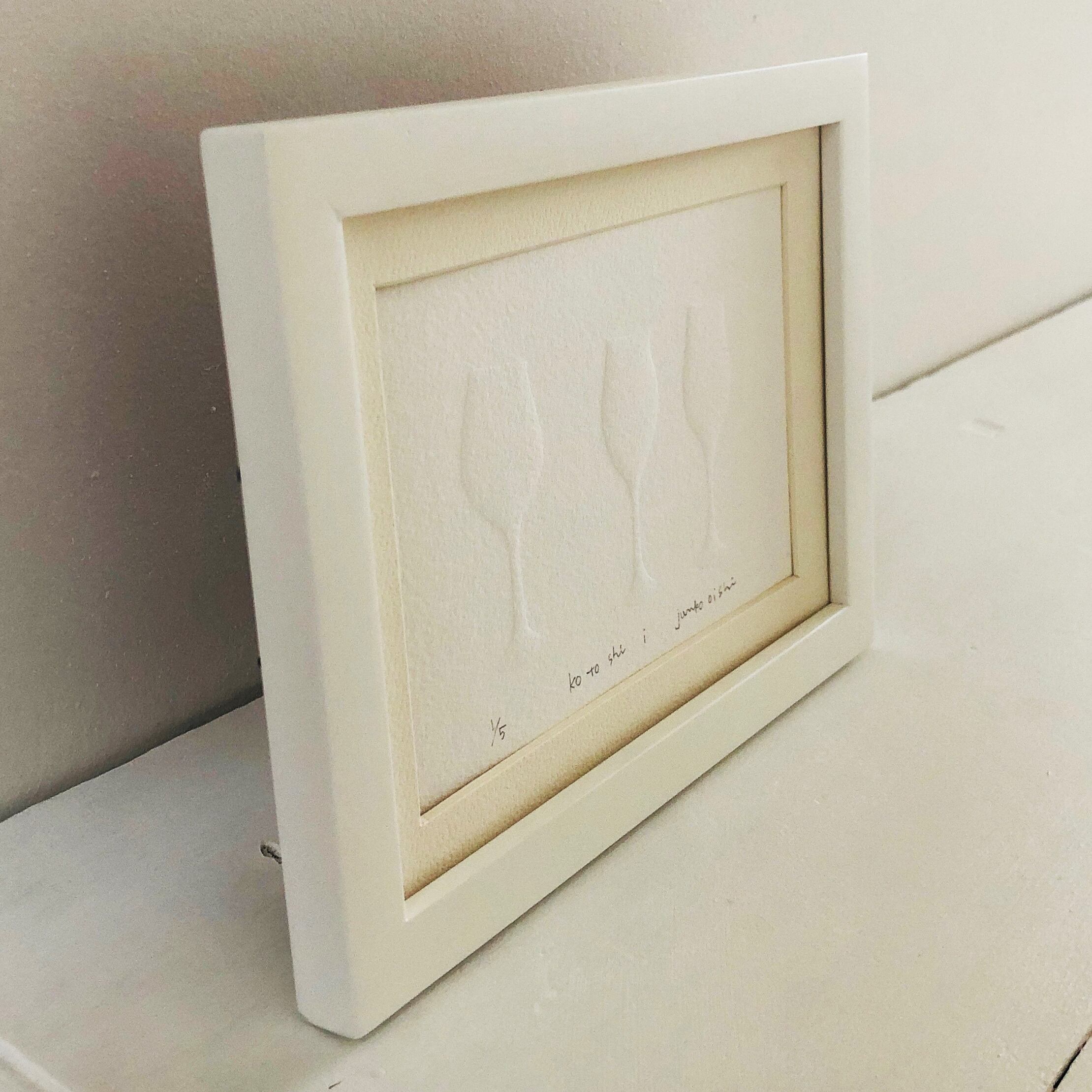 白いグラスの絵・エンボス作品「 ko to shi ⅰ」(白い額入り)・送料無料