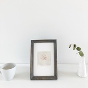 ブルーグレイ色をしたアンティーク調の額に入れて販売します。