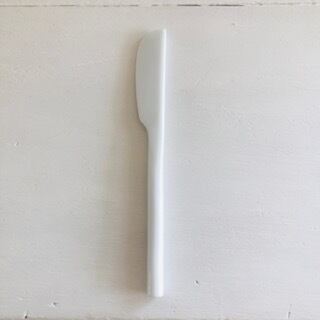日本製 白磁のバターナイフ、ブロカント雑貨です。シンプルで洗練された形が特徴で、細いラインが魅力的です。